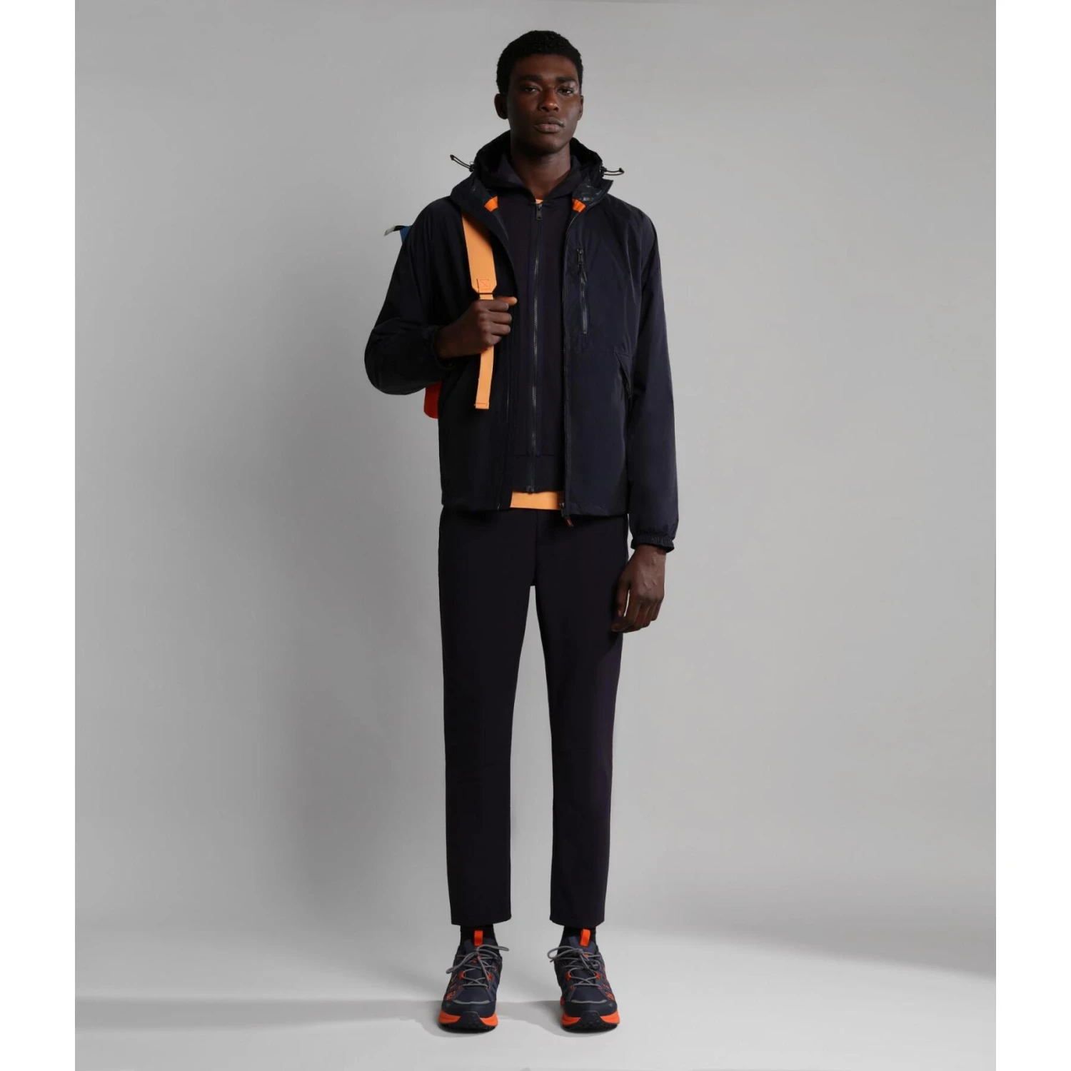 Une silhouette urbaine polyvalente associée à des performances techniques. Conçu pour surmonter les changements météo soudains, ce coupe-vent présente un tissu à mémoire de forme et une doublure résistante à l’eau intégrée. Axé sur la performance, il est doté d’une capuche réglable, de poches passepoilées et utilitaires et de multiples détails fonctionnels pour que son porteur soit à l’aise et au sec. Ce modèle contemporain est rehaussé d’une bande contrastante qui lui confère une esthétique streetwear.